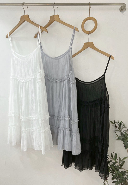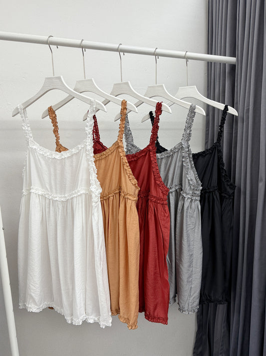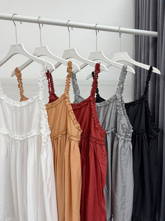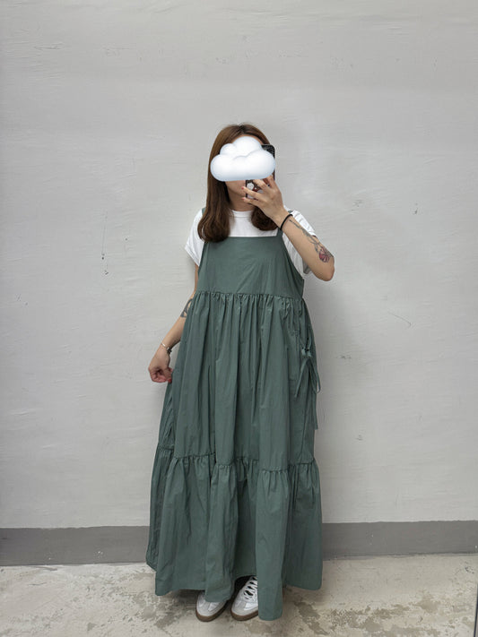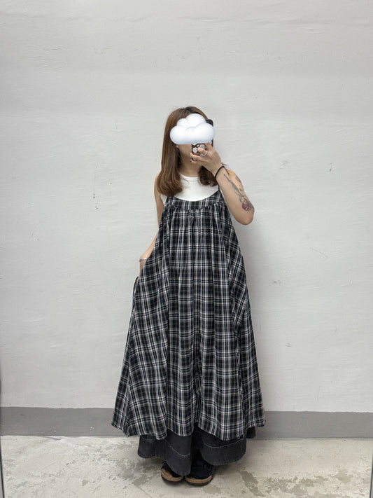 【新品優惠】ruffle邊格紋吊帶中長外搭丨2 col