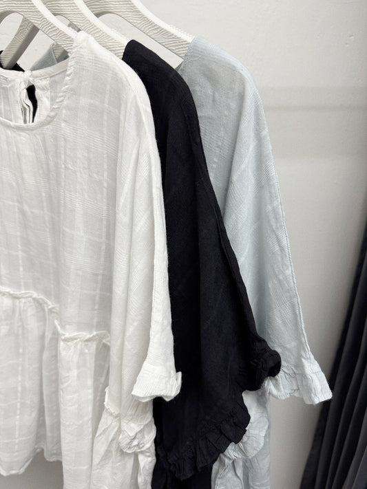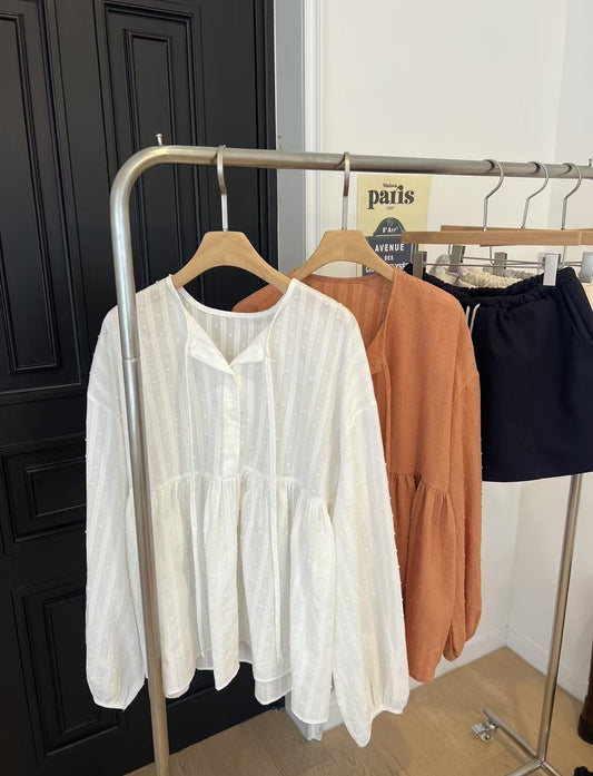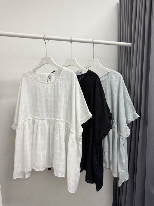 推!束袖下擺ruffle邊棉料上衣丨3 col
