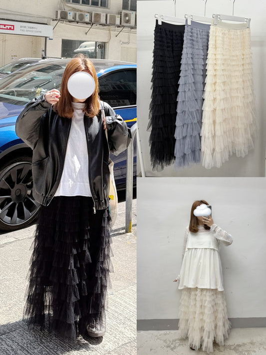 【新品優惠】雙面~格紋紗紗ruffle半身裙丨5 col