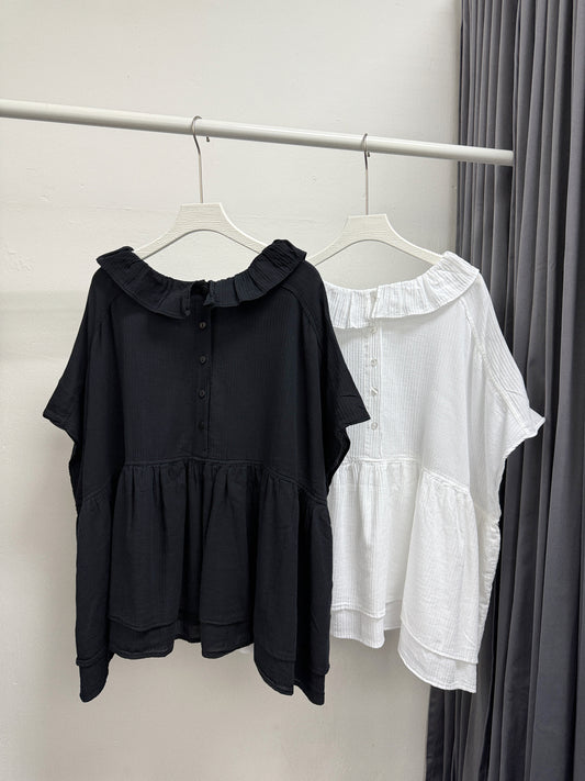 【新品優惠】下擺ruffle反領恤top丨3 col