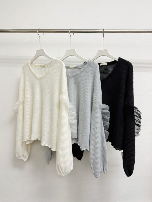 荷葉領暗格紋雙層下擺ruffle上衣 -