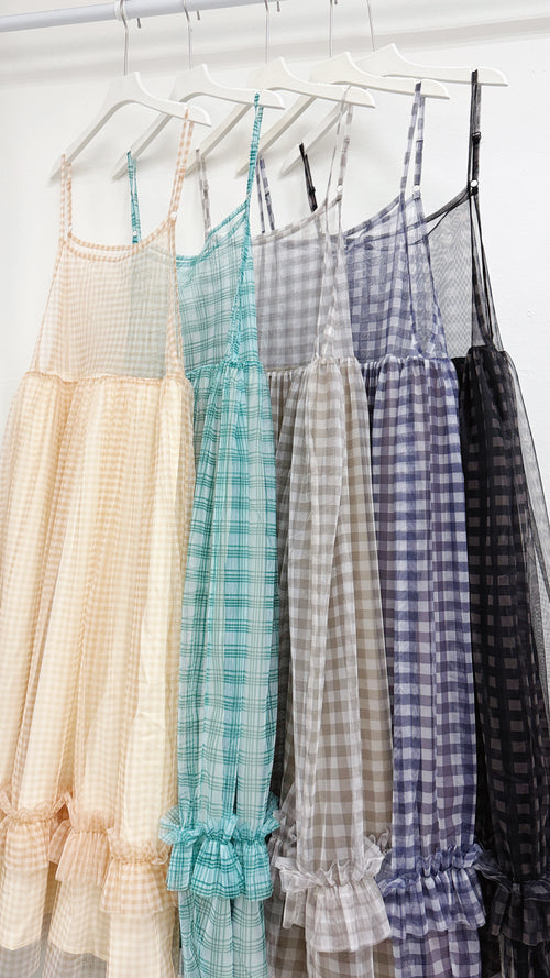 千鳥格拼條紋bb棉層層半身裙丨2 col -