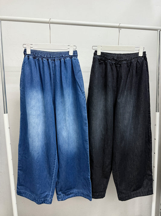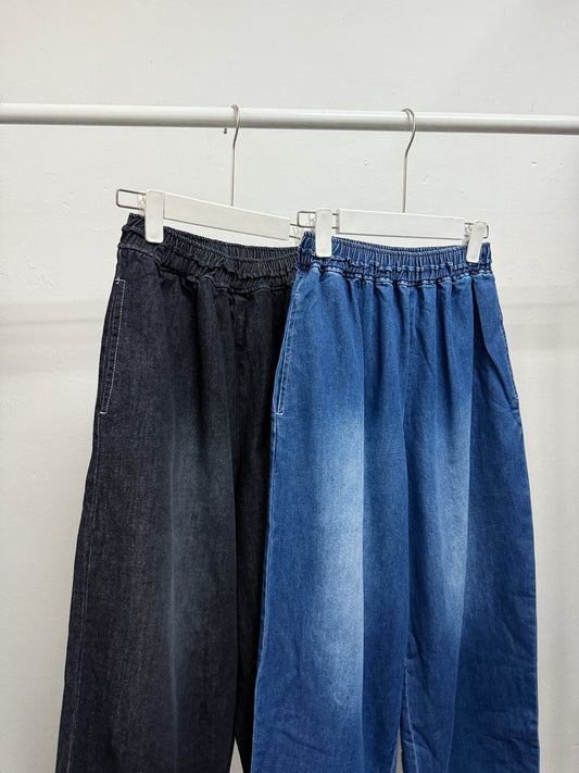 全橡筋腰洗水色牛仔闊褲丨2 col