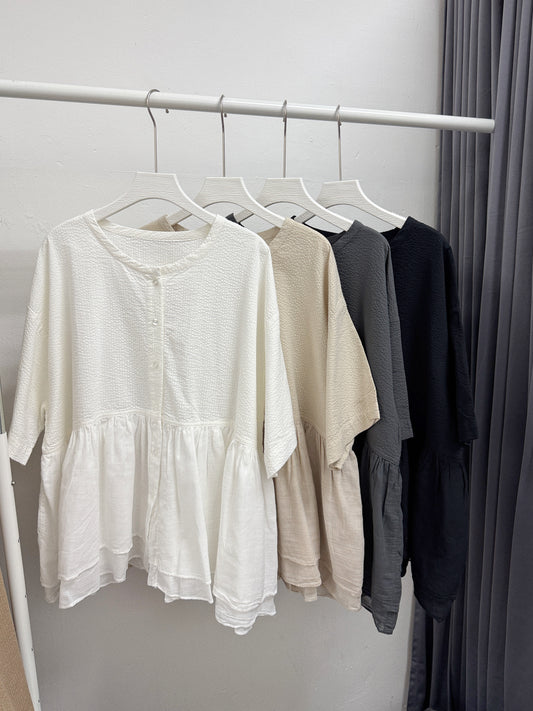 推!束袖下擺ruffle邊棉料上衣丨3 col
