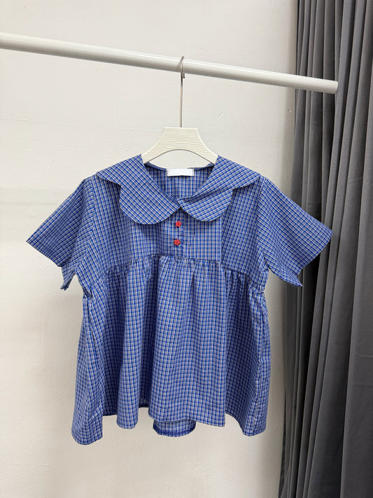 格紋荷葉領bb棉上衣丨2 col -