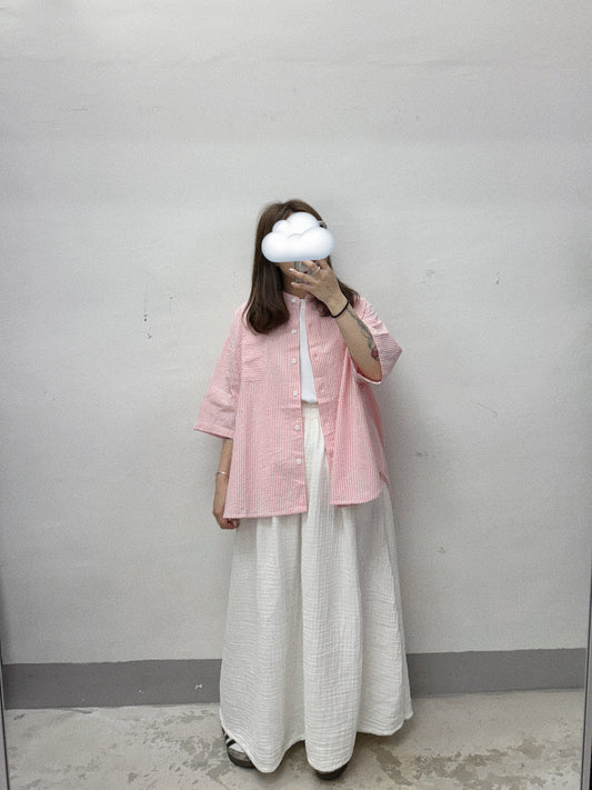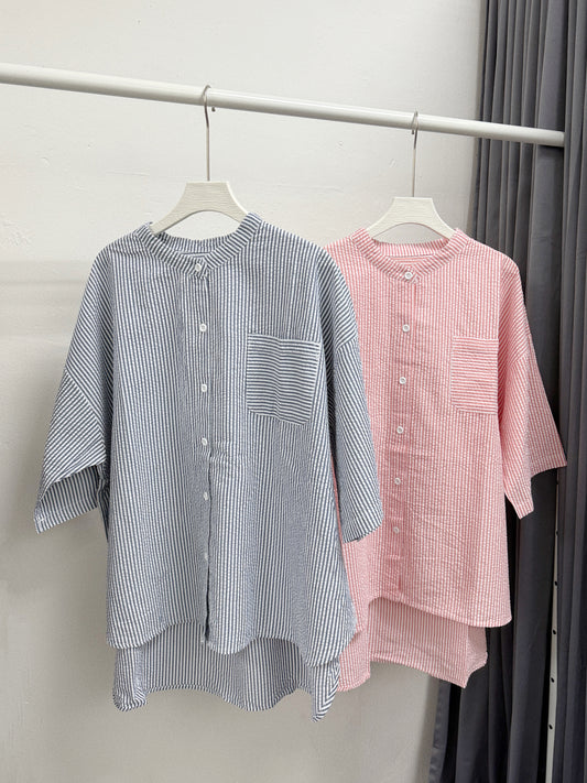 【SALE】圓領條紋闊型開胸上衣丨2 col -