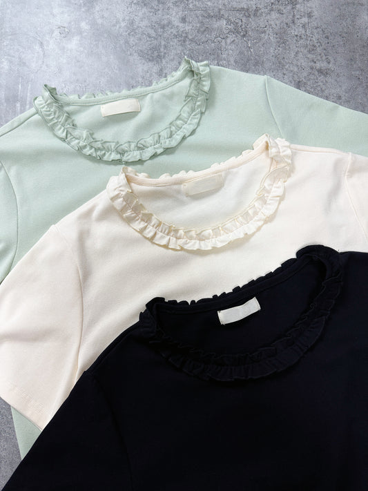 親膚木耳領條紋打底top(可穿指)丨3 col -
