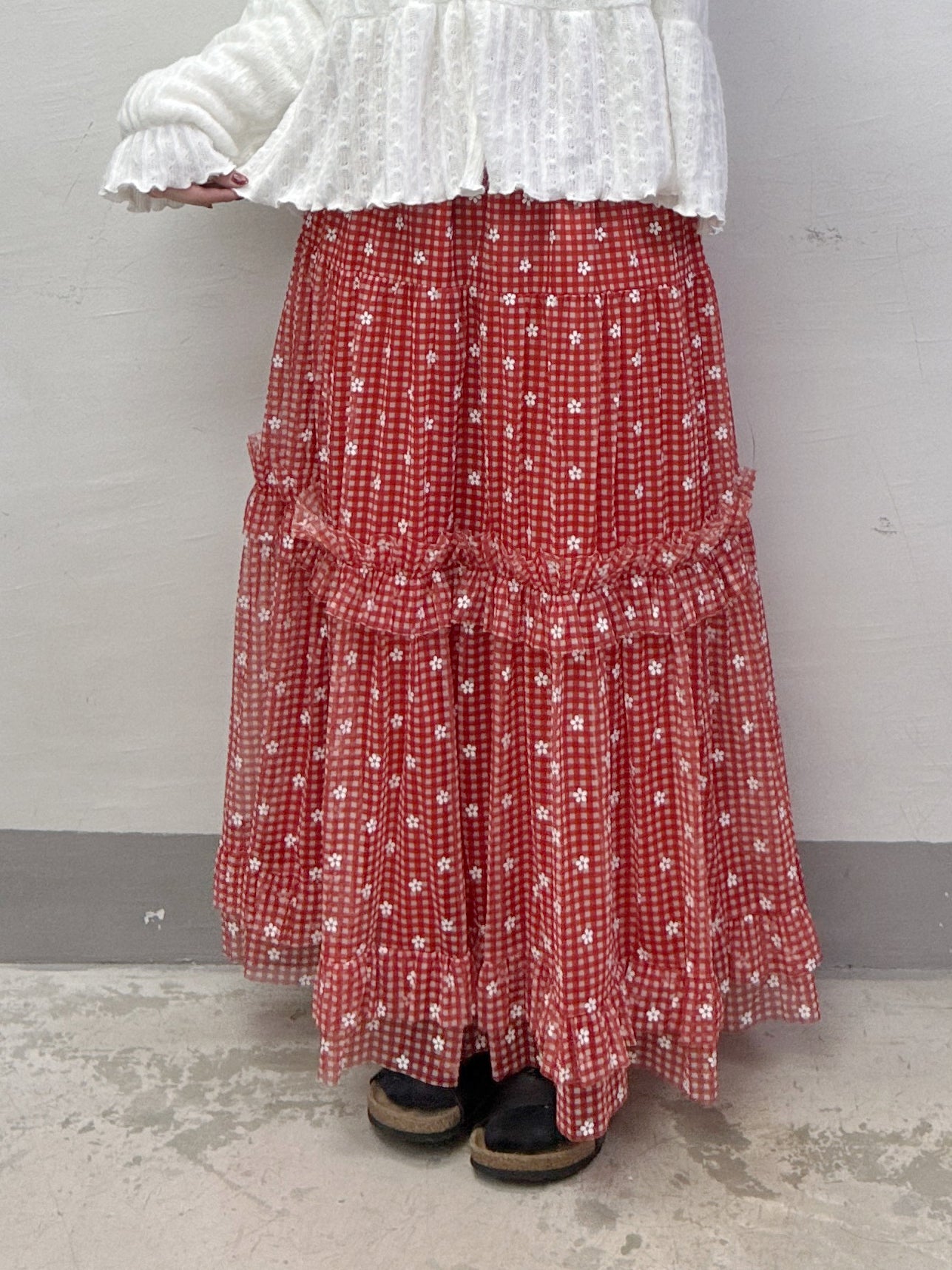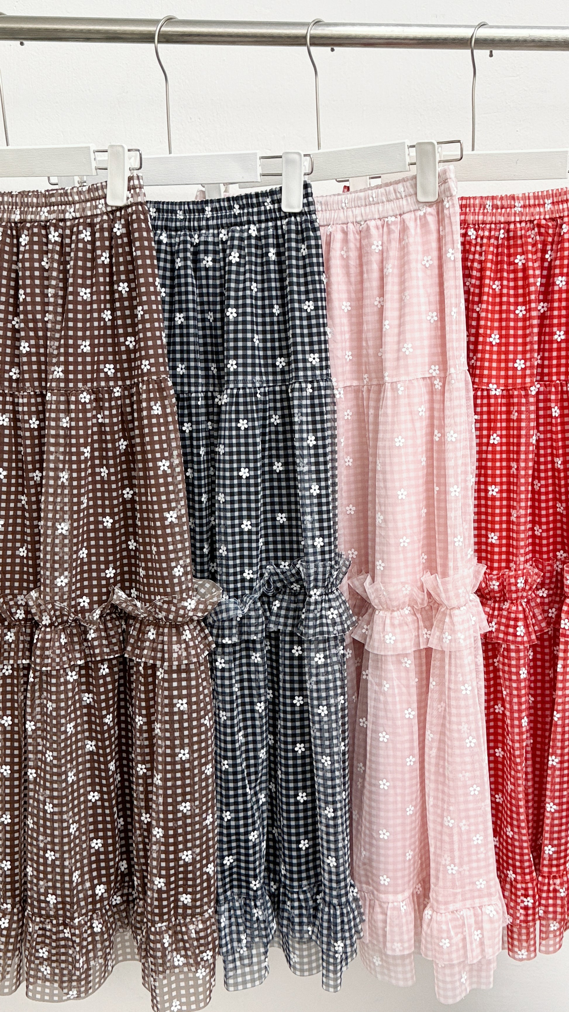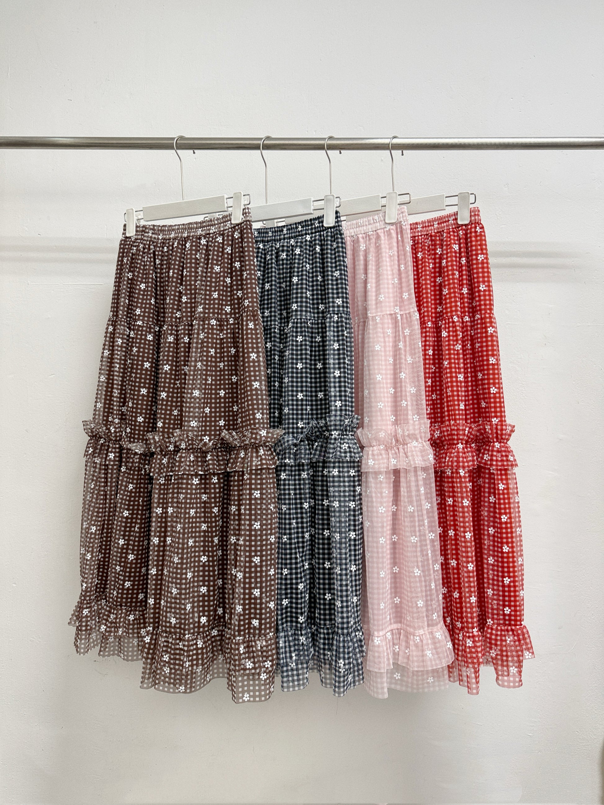 【新品優惠】印花拼格紋紗紗半身裙丨4 col