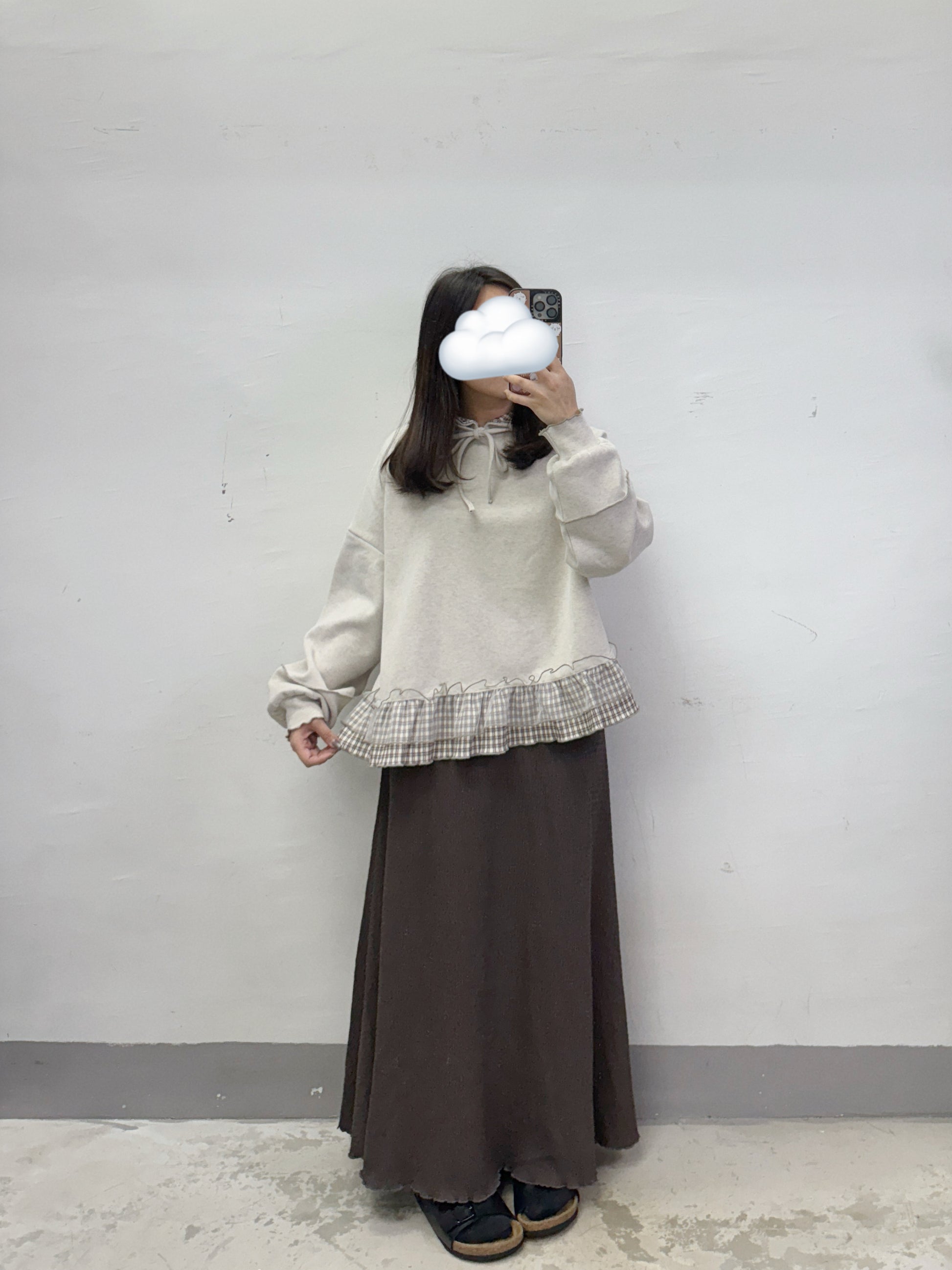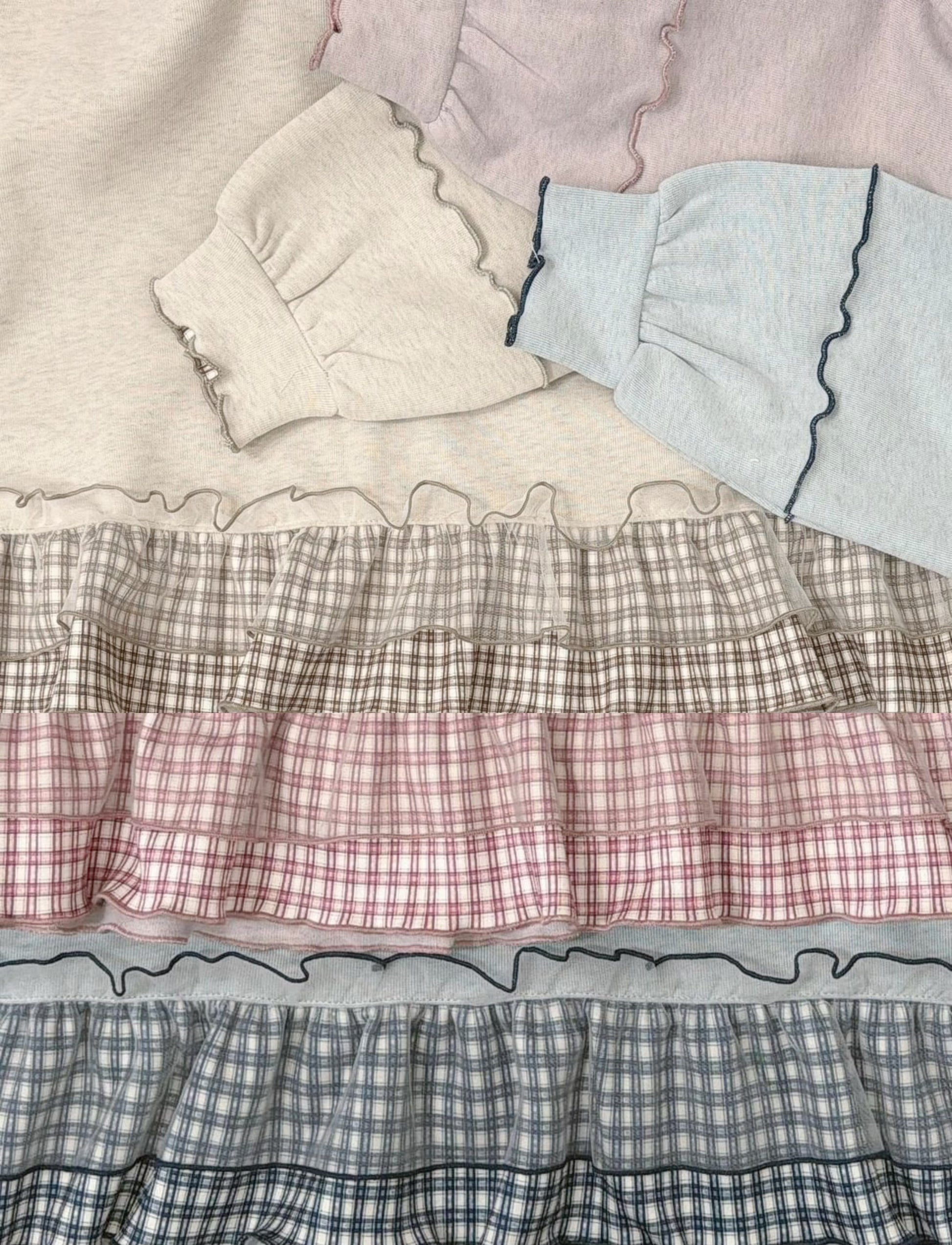 【SALE】下擺拼紗格紋有帽上衣丨3 col