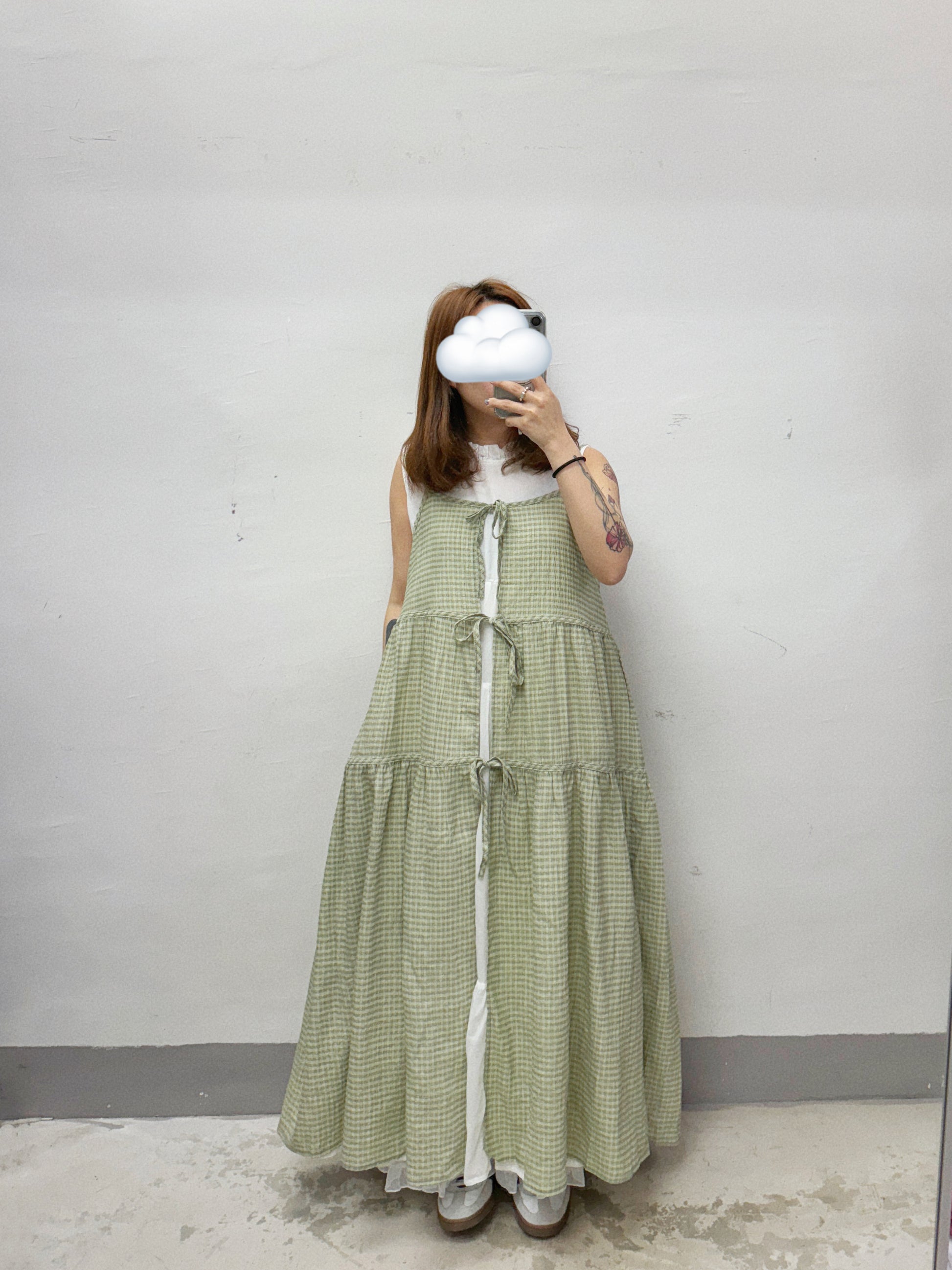 【SALE】格仔綁帶ops外搭丨白