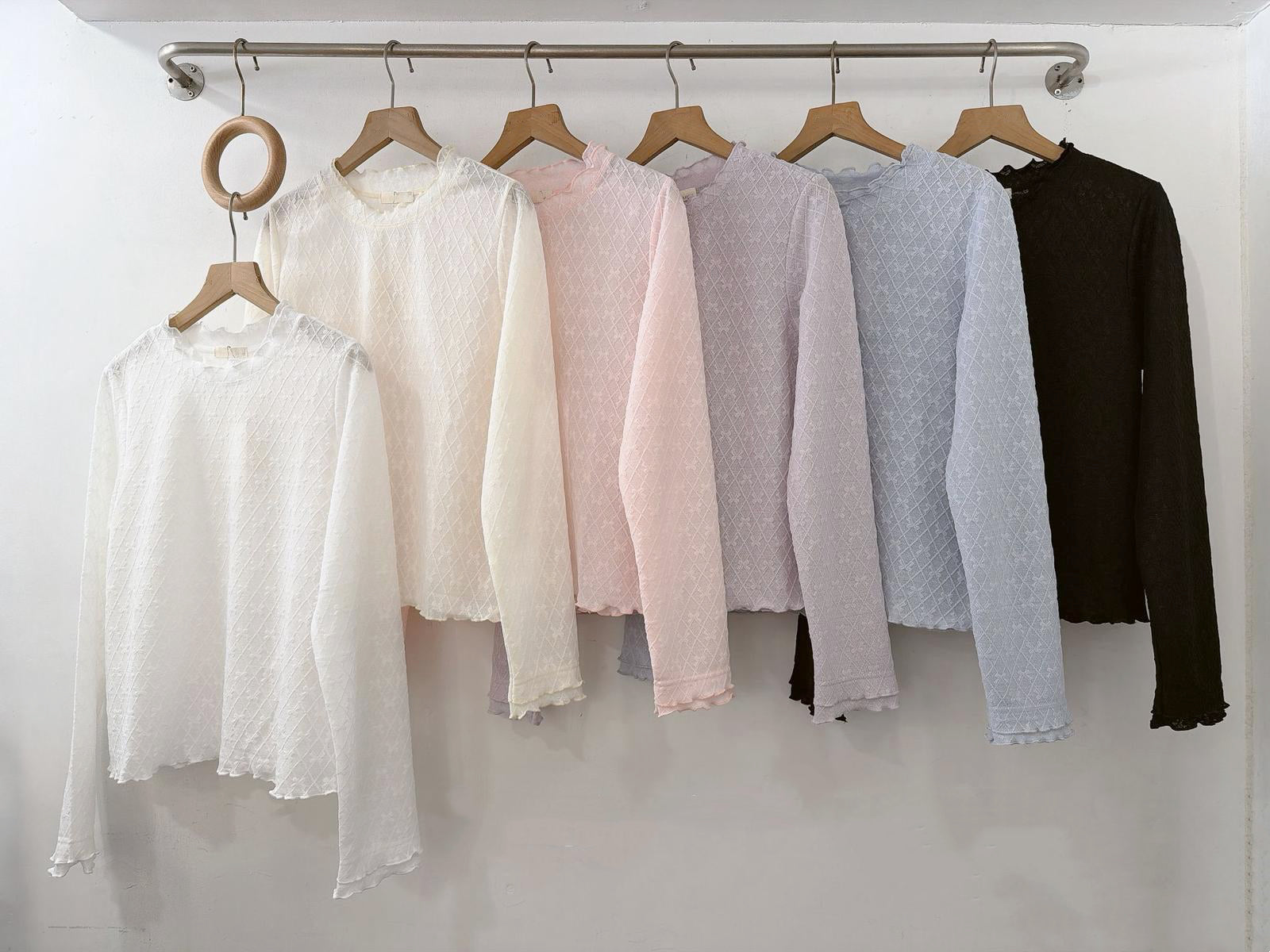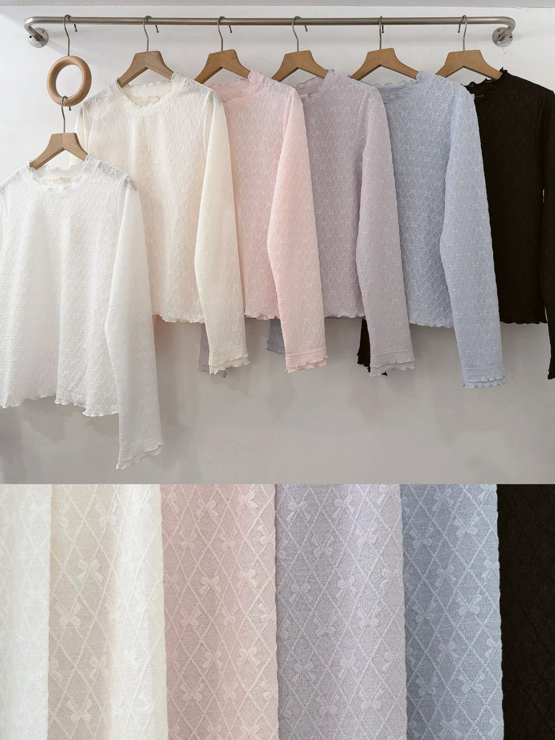 【SALE】蝴蝶菱格紋打底top丨米白 藍