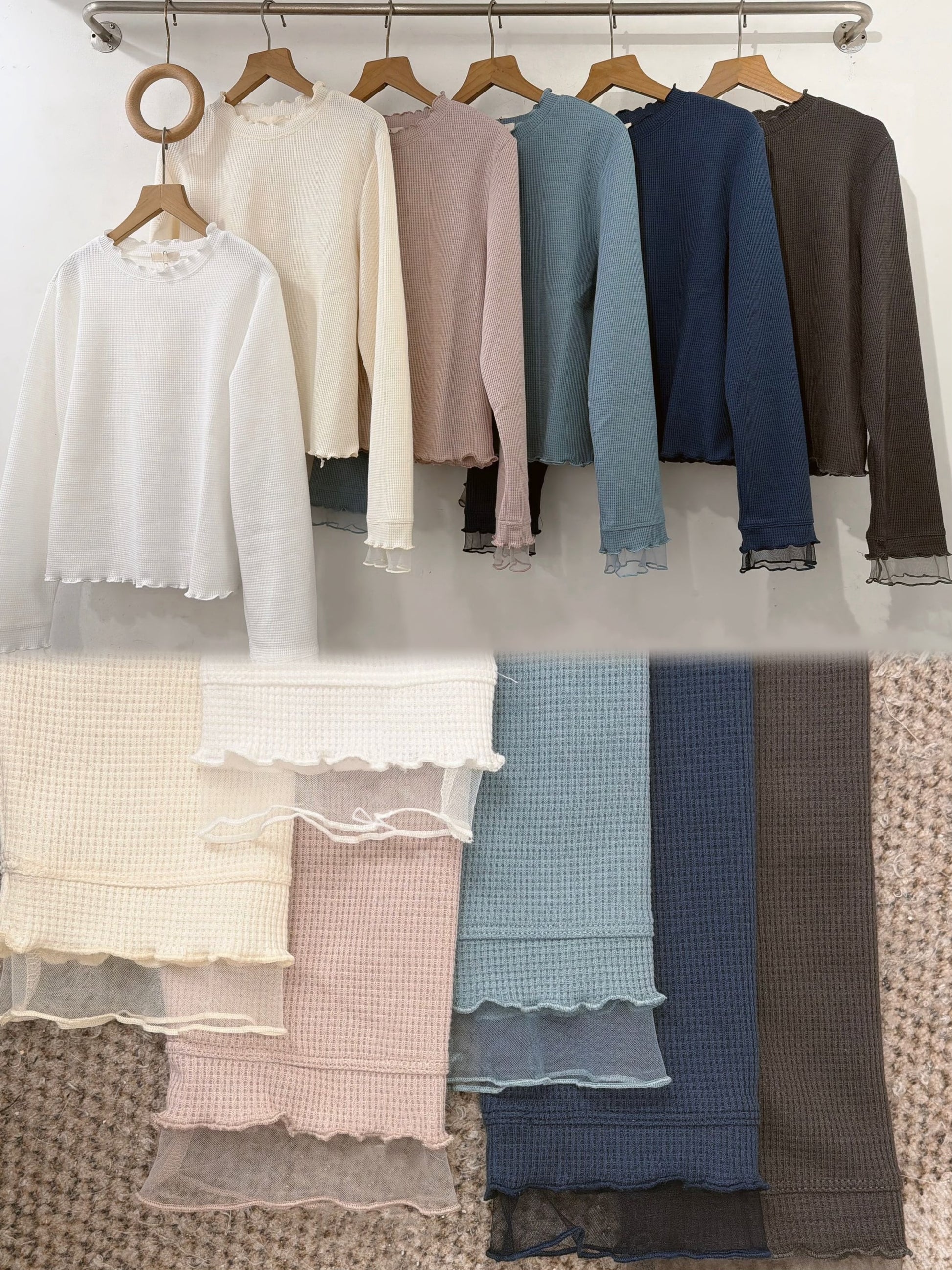 【新品優惠】袖口拼紗窩夫格紋打底top丨6 col