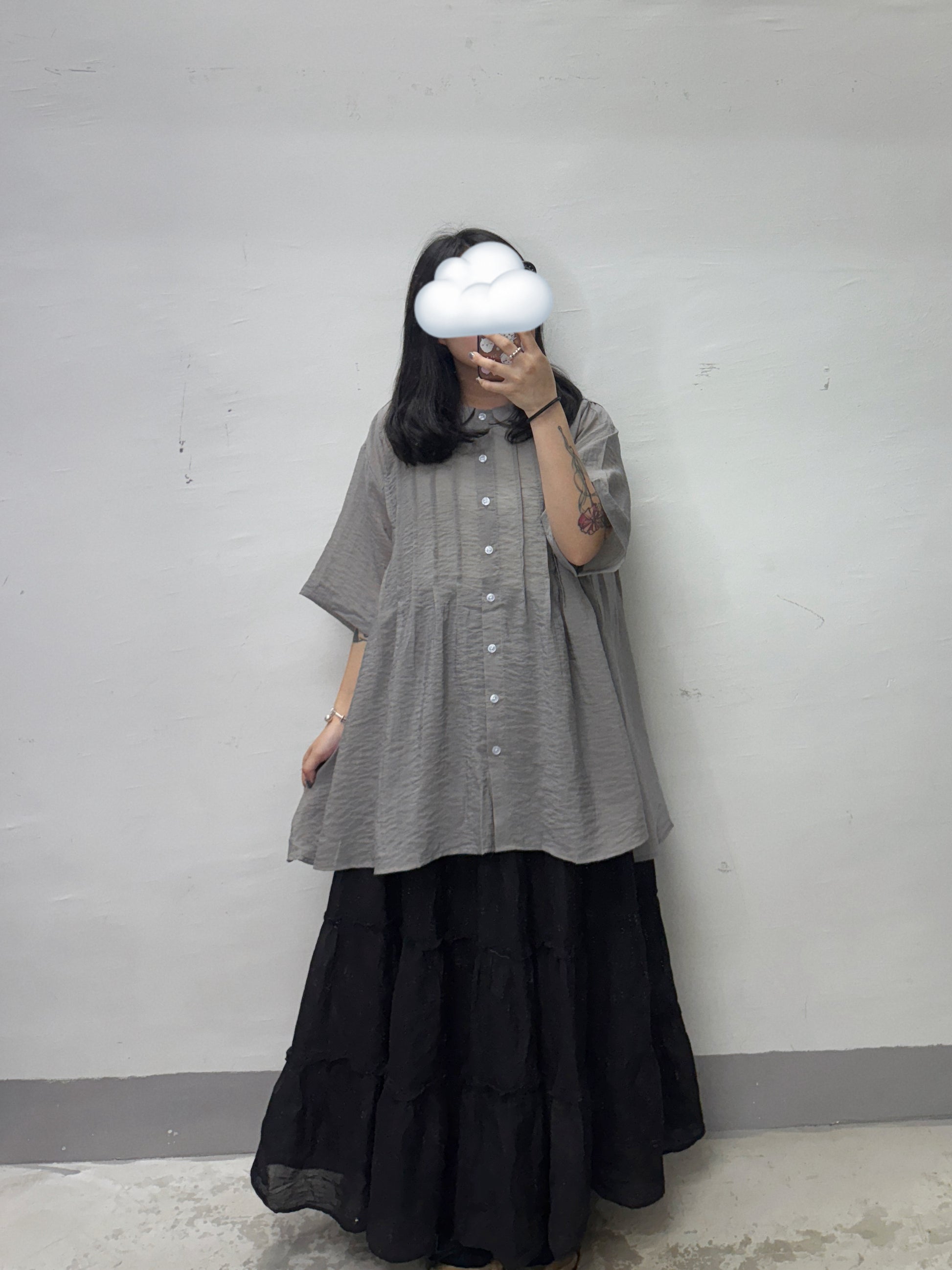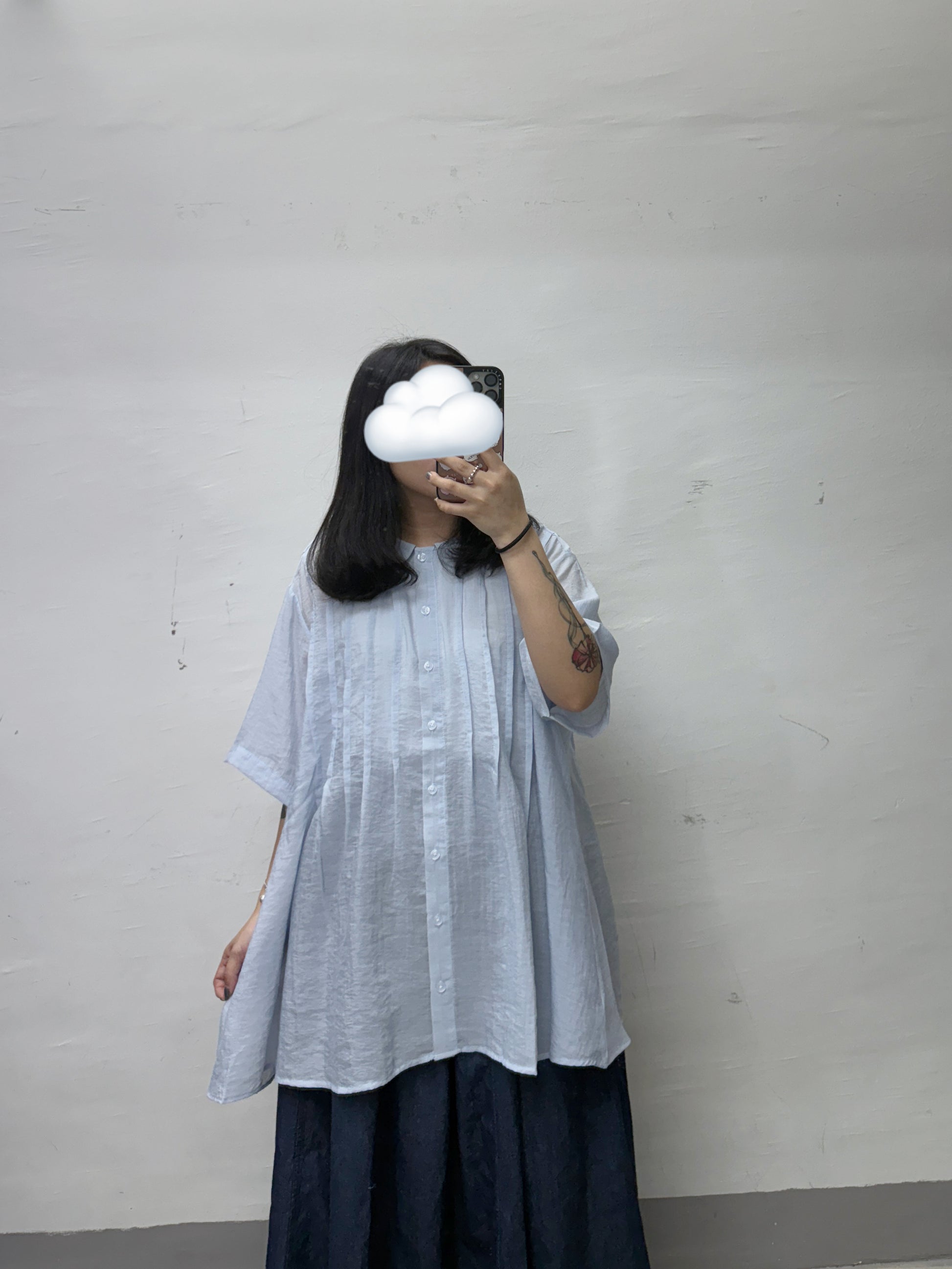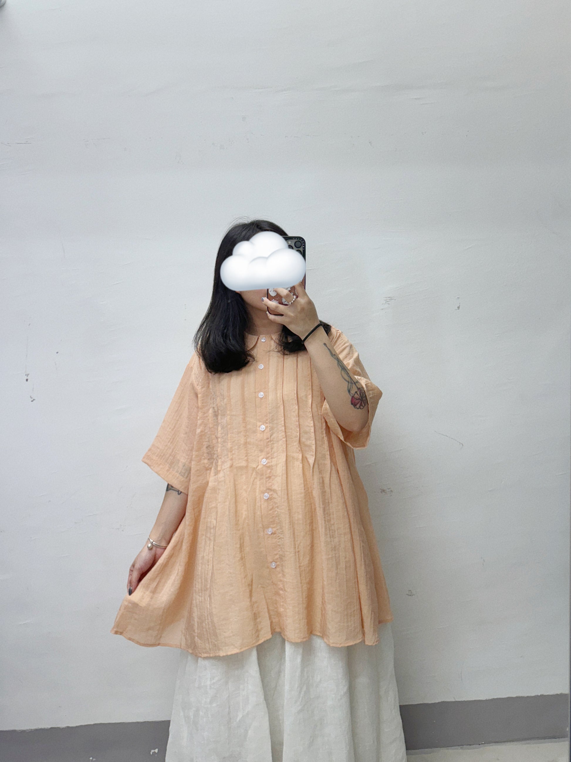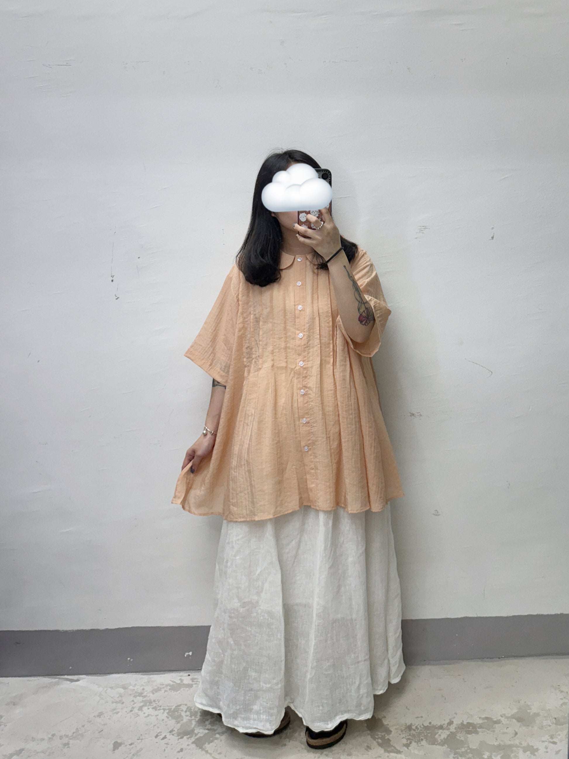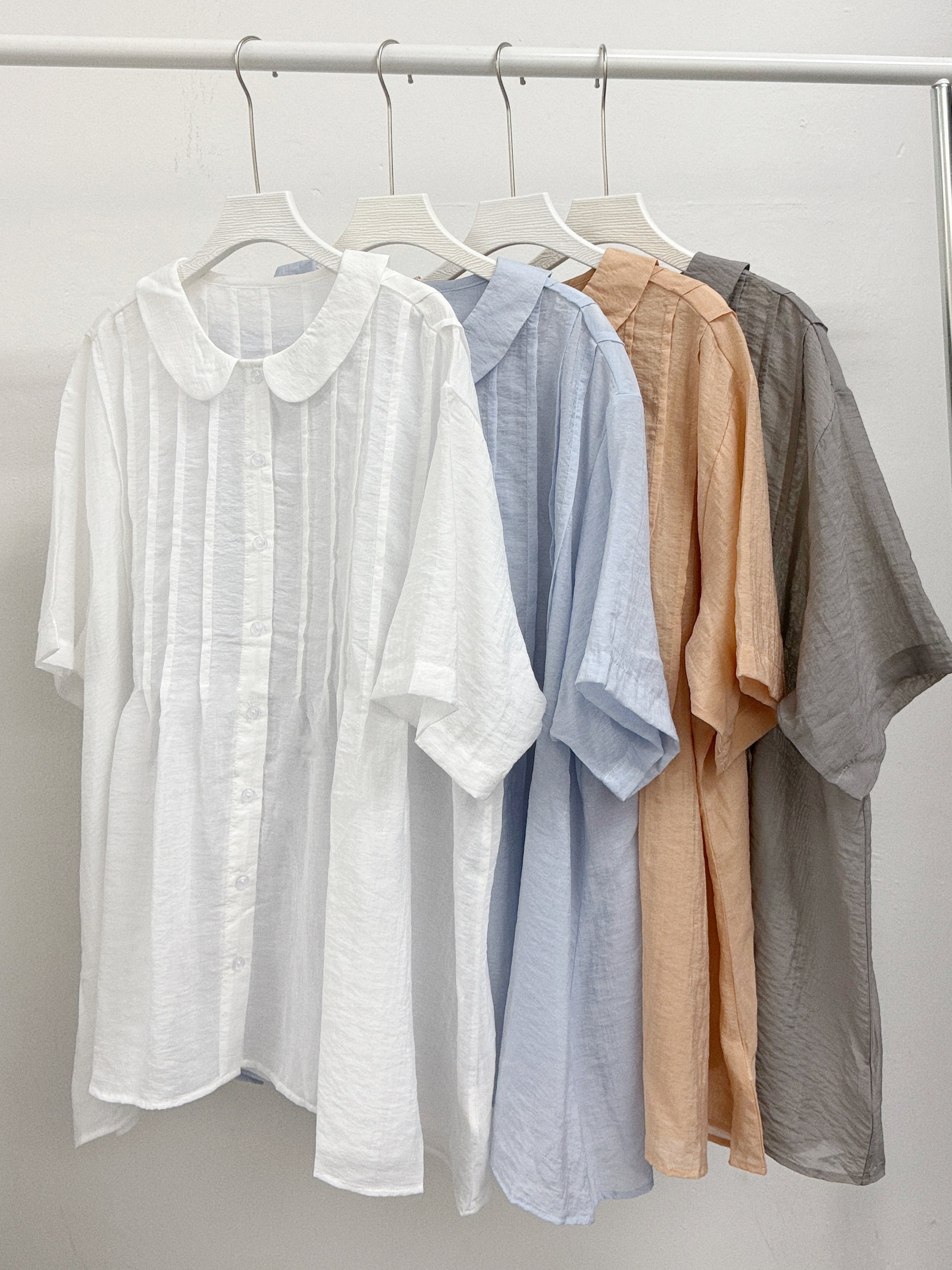 推!BB領壓褶半透襯衫丨白 灰 橙