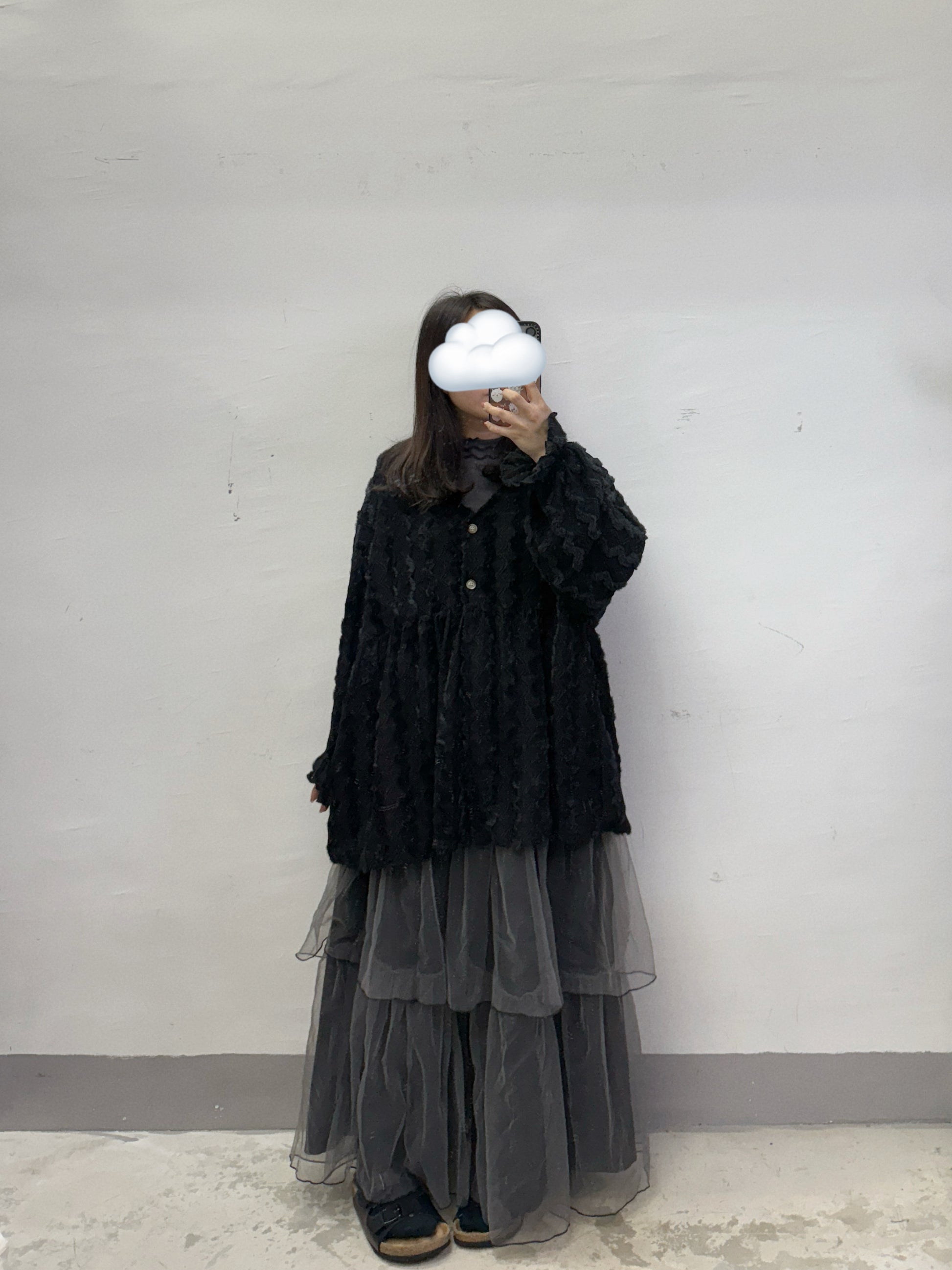 波浪紋v領外襯丨黑