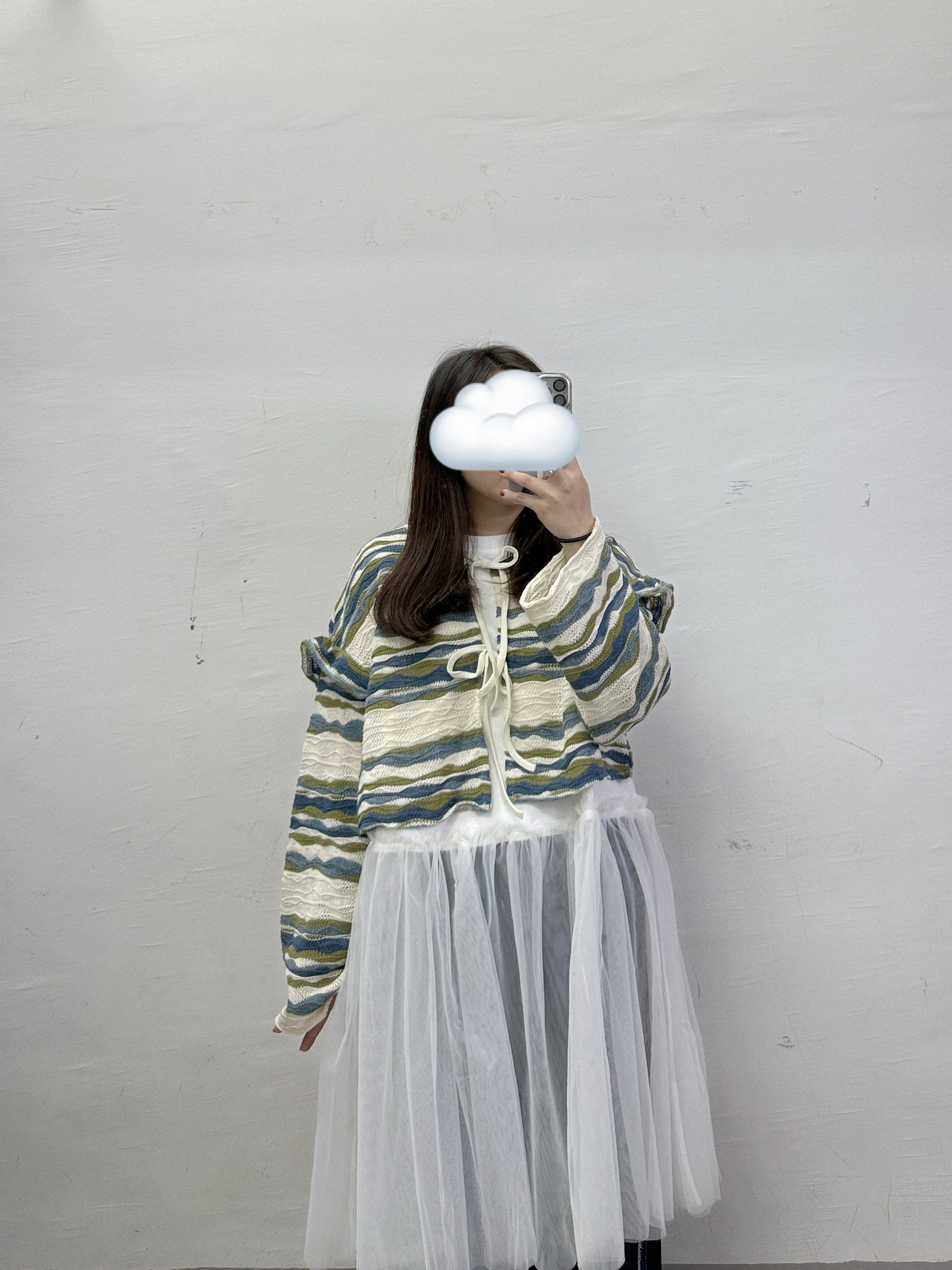 靚拼色~波浪紋綁帶針織外襯