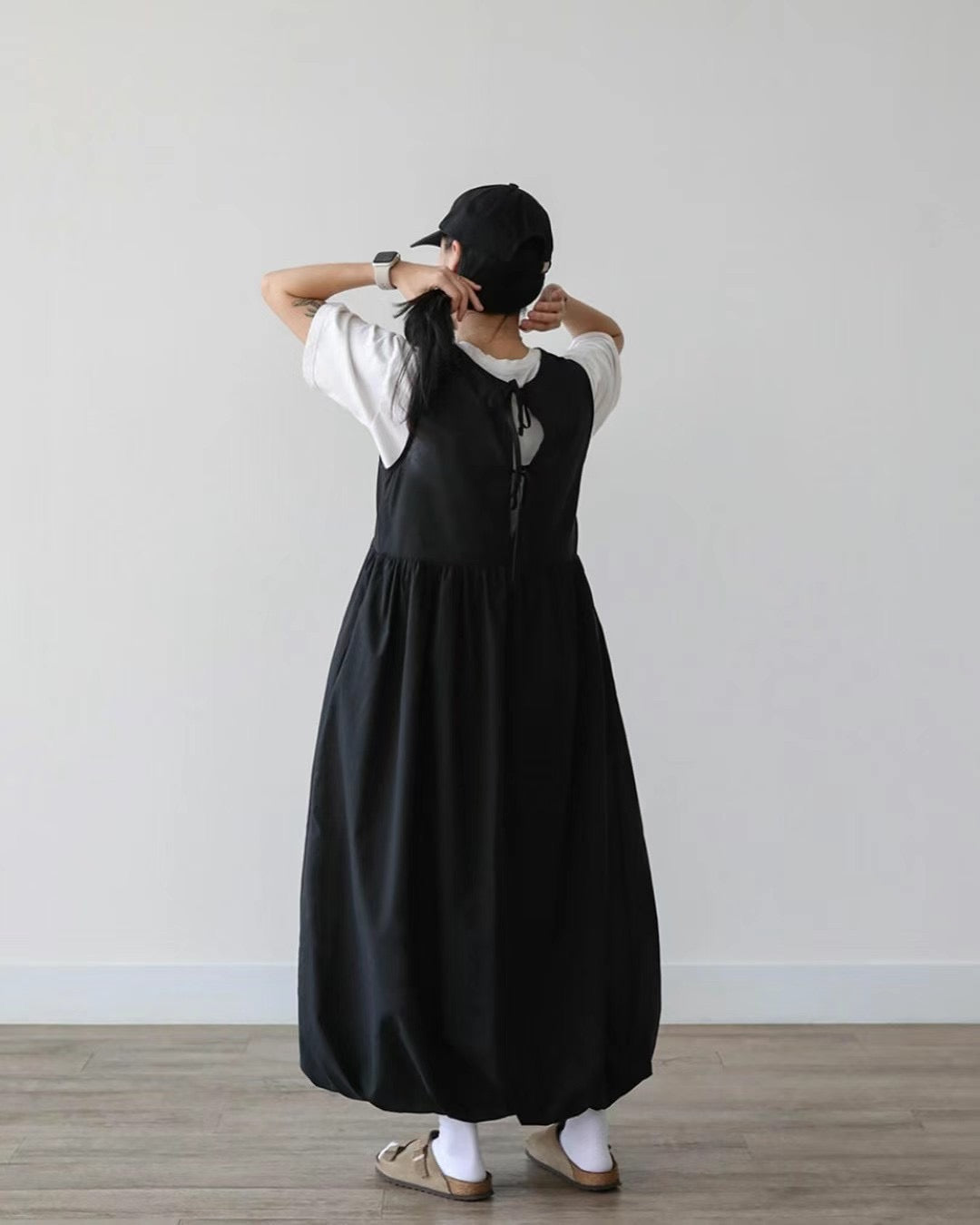 【SALE】2-way 綁帶蝴蝶結泡泡ops|白